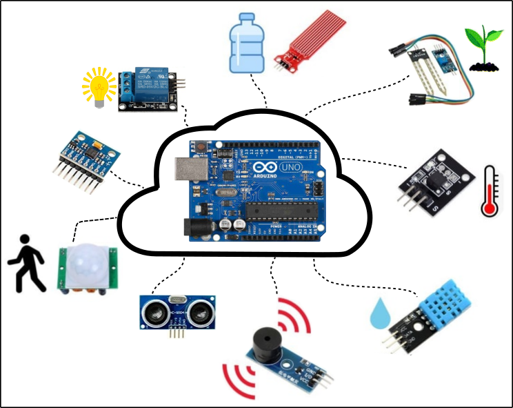 El kit contiene una placa Arduino Uno, una colección de sensores