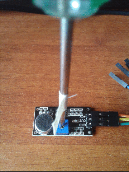 cual queremos activar la señal. Para ello vamos a utilizar un atornillador pequeño para ir ajustando la sensibilidad del sensor.